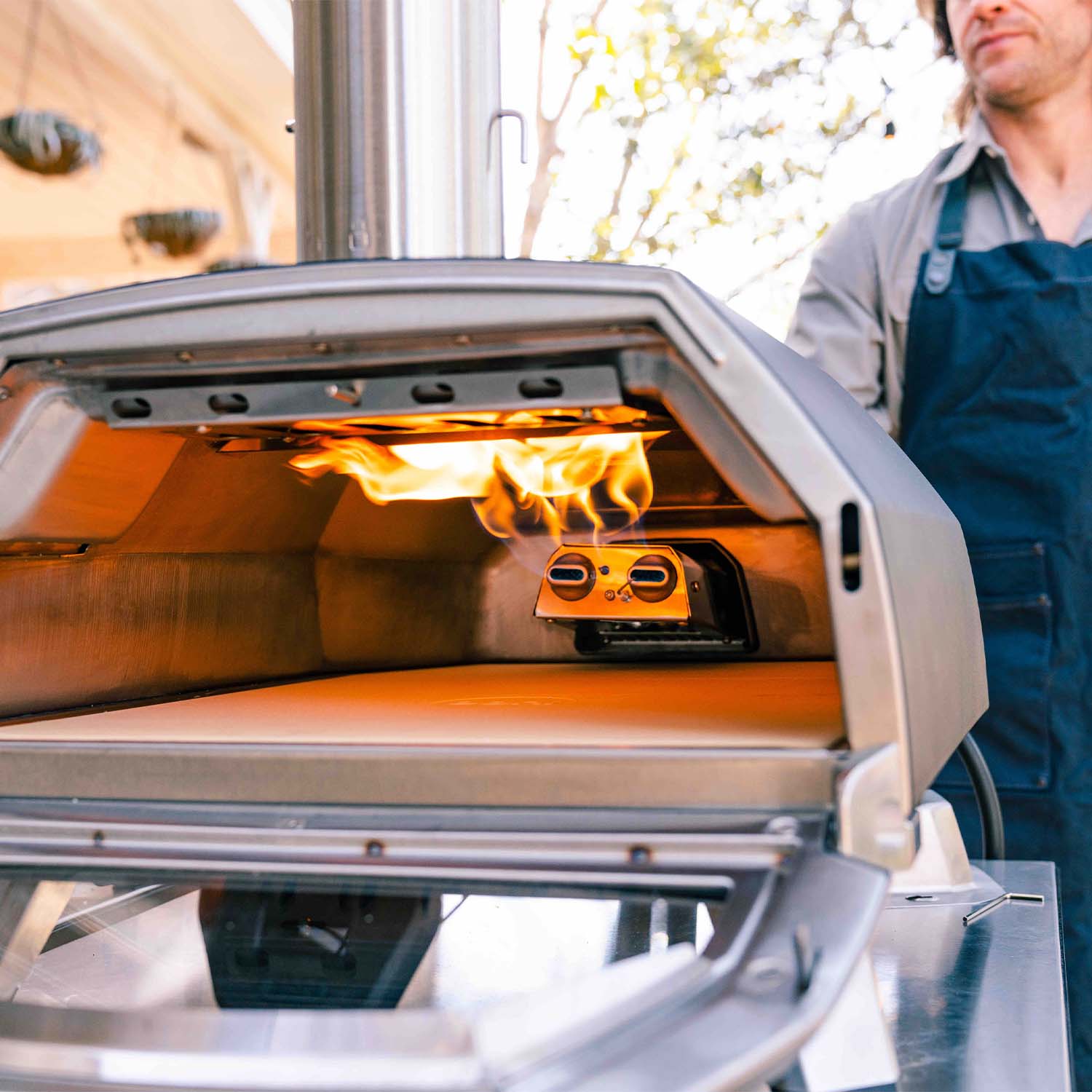 For a convenient and consistent cooking experience, try the Natural Gas Burner for Ooni Karu 16 and Karu 2 Pro. This accessory product slides easily into the rear port to quickly switch your oven into cooking with natural gas from a fixed natural gas line.