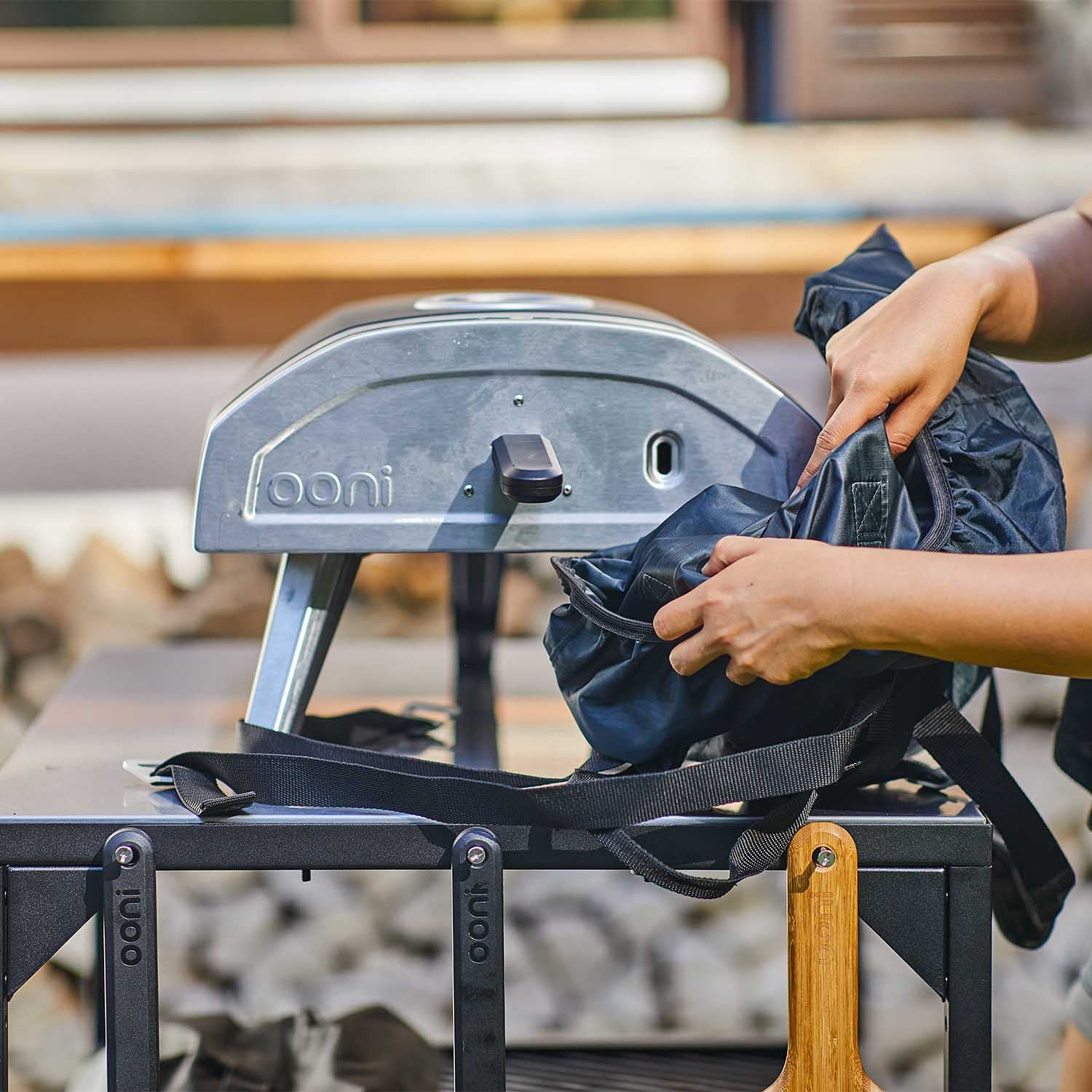 Protect your Ooni Fyra 12 come rain or shine with the Carry Cover for Ooni Fyra 12. The elasticated edges and wrap-around straps will ensure it stays put, even in strong winds or while being carried. It's fully waterproof, and features aluminium buckles for maximum toughness.